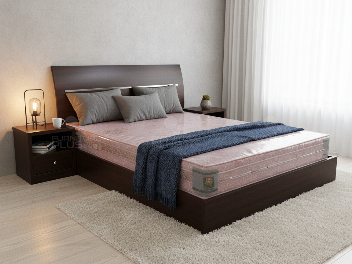 A simple and elegant design, the Jasmine bed lends itself well to a multitude of interior styles. It is built to last, using solid Mahogany timber, a hardwearing natural material. The slightly slanted headboard and an inserted stainless-steel strip on it are design elements that enhances its beauty.