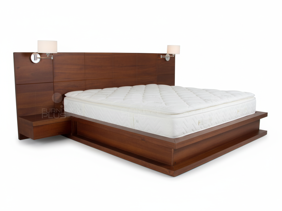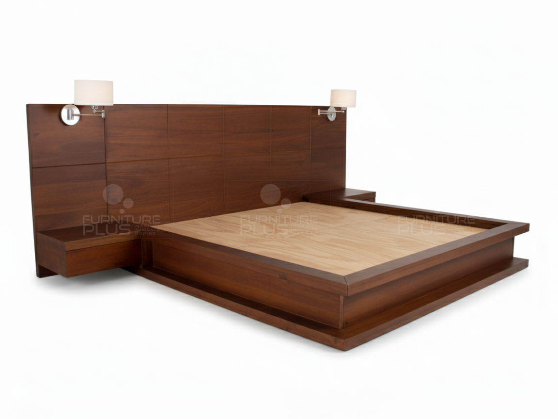 The sturdy, chunky Joanna platform bed has clean, straight lines to show off the wood grain. This solid bed is a great choice for timber lovers, who really want to see lots of timber. The two bed side drawers hung on the tall, dramatic headboard with grooves at even intervals, and the thick wood block side panels create a boxed-look frame elevates this unique product to its highest standards. Joanna is made of solid Mahogany timber that will last for many years growing more graceful with age.