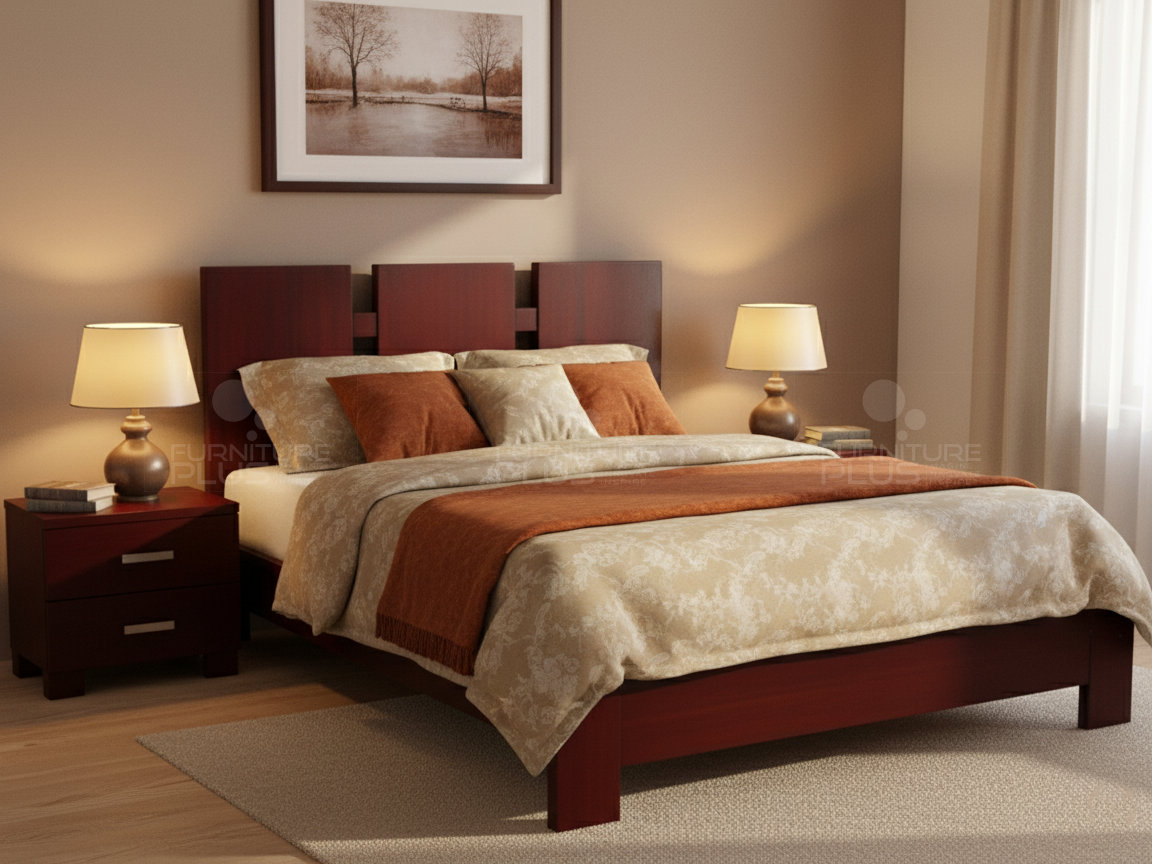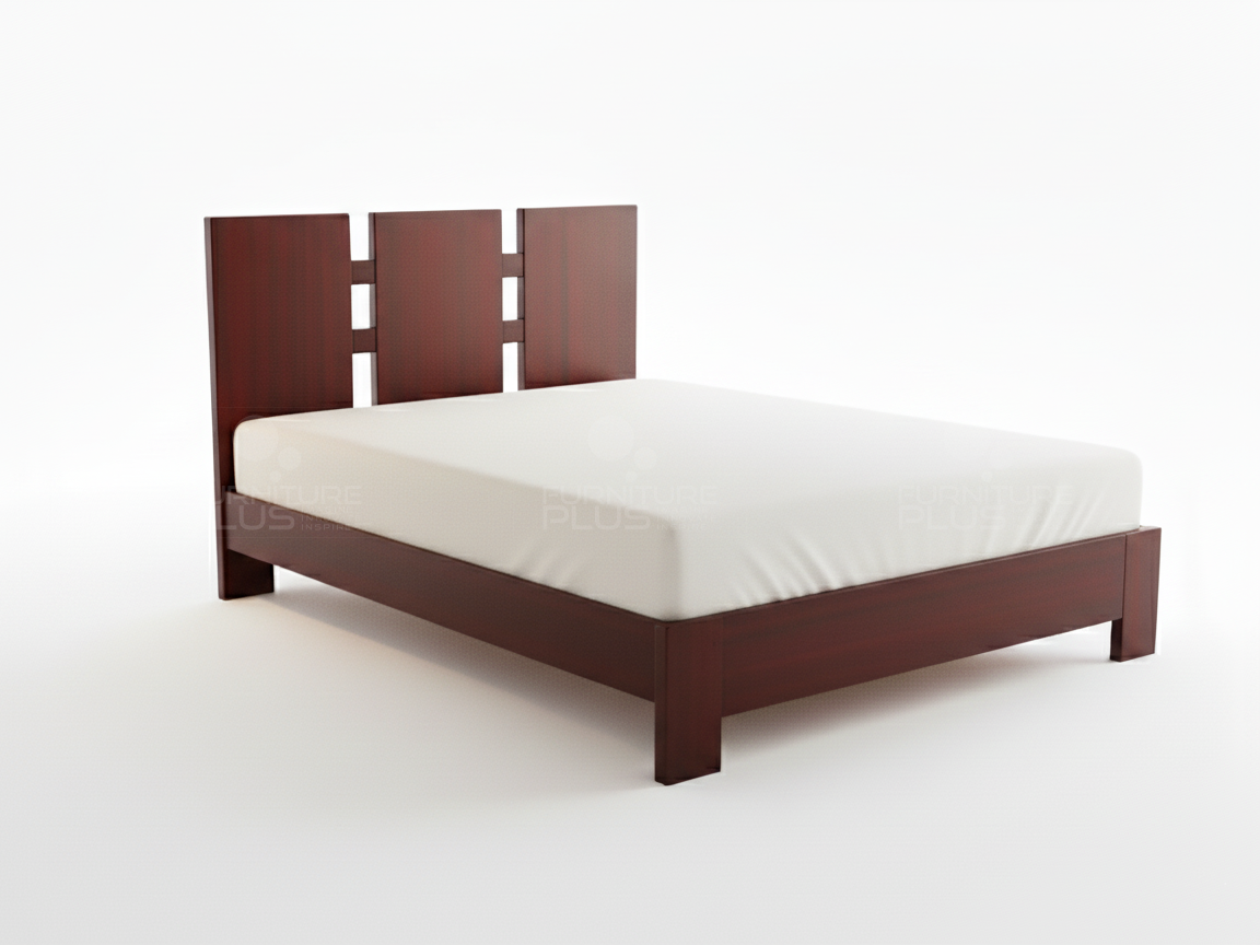 The heavy vertical pillars stands steadily showcasing the solid construction and its signature elements of this modern bed. This beautiful Linette bed with raised legs offers clearance for valuable under bed storage space and is the perfect addition to your favorite aesthetic. This unique design is made of solid Mahogany timber that will last for many years growing more graceful with age.