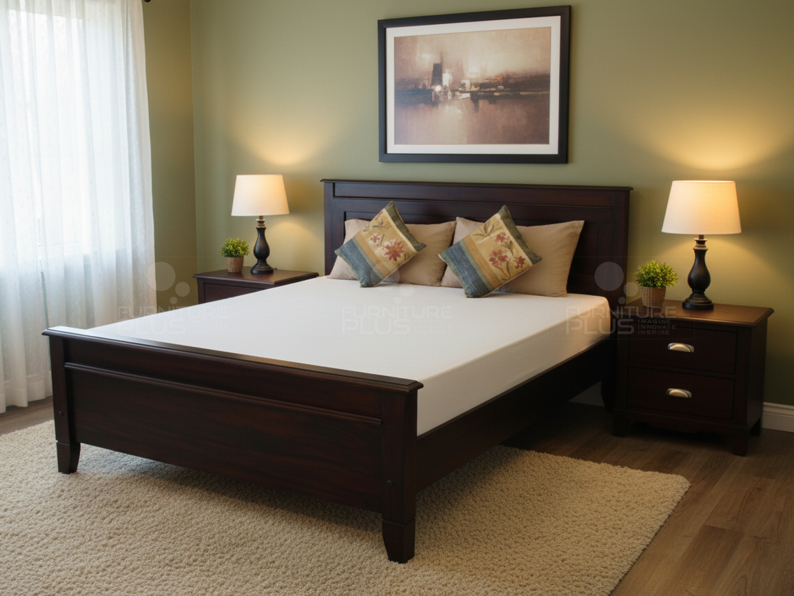 Slowly drift off to sleep within the cozy setting this piece creates. A bold wood finish adds a touch of warmth while the transitional design allows this fixture to add to the relaxing ambiance you were aiming to create. Flaunting rare beauty, the headboard and the foot end shows off uniquely molded diagonal lines which look spectacular when the lights are on. The Serina bed is made of solid Mahogany timber, a hardwearing natural material that will last for many years.