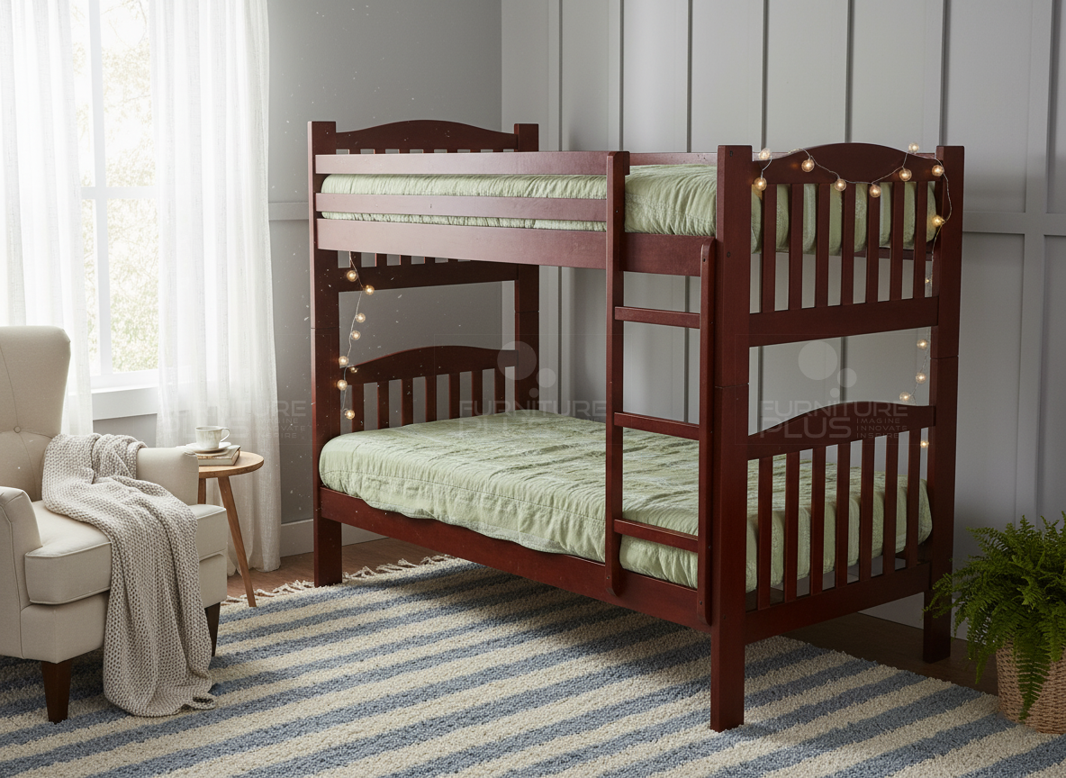 Designed to get the most out of your space and your budget, the Ruth bunk is a great choice for siblings or sleepovers. Made out of solid Mahogany timber which is a natural hardwood.
