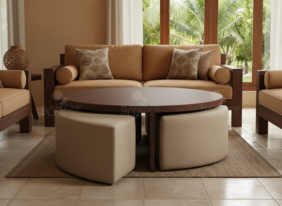 The Owen coffee table is produced out of hardwearing natural Mahogany timber to give the genuine feel and designed with both function and character in mind. Its round shape together with the upholstered seats that may be purchased separately would be an ideal solution for optimizing the seating capacity.