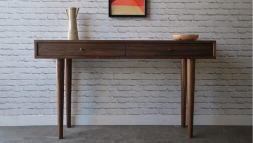 Accentuate the timeless style coupled with its fluted legs for your living room or den with this lovely console table. Showcasing the master craftsmanship, Foxglove is made out of solid Mahogany wood, a durable and renewable material that maintains its genuine character with each passing year. The drawers provide space to keep odds and ends at your arm length.