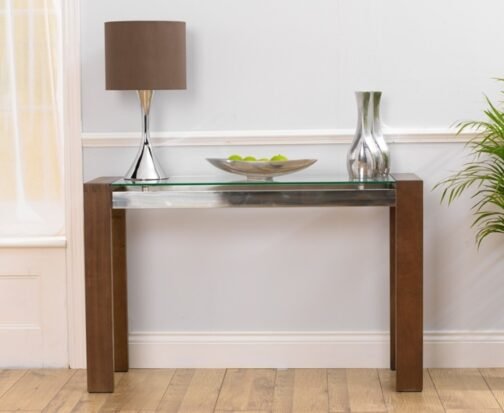 The clean lined George console table legs made of solid Mahogany timber and combined with stainless-steel box frame. Together with the glass top resting on, this is an ideal decorative display piece to be kept along a wall across from the front door and get ready to grab your guests’ glances as soon as you greet them.