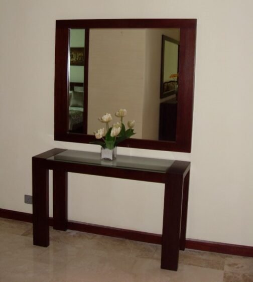The clean lined Jesmine console table legs are made of solid Mahogany timber together with the glass top resting on it. This is an ideal decorative display piece to be kept along a wall across from the front door and get ready to grab your guests’ glances as soon as you greet them.