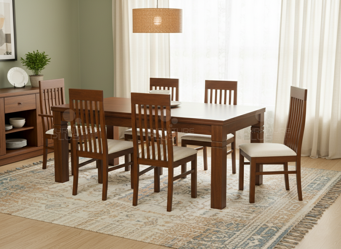 The Andrew TT dining table is uniquely crafted with authentic planks using solid Mahogany timber that will last for many years growing more graceful with age. The solid top joined to chunky square legs really adds a presence to the dining room not only as a gathering spot for family and friends, but also as a focal point in the home. The grooves on legs add more beauty to it.