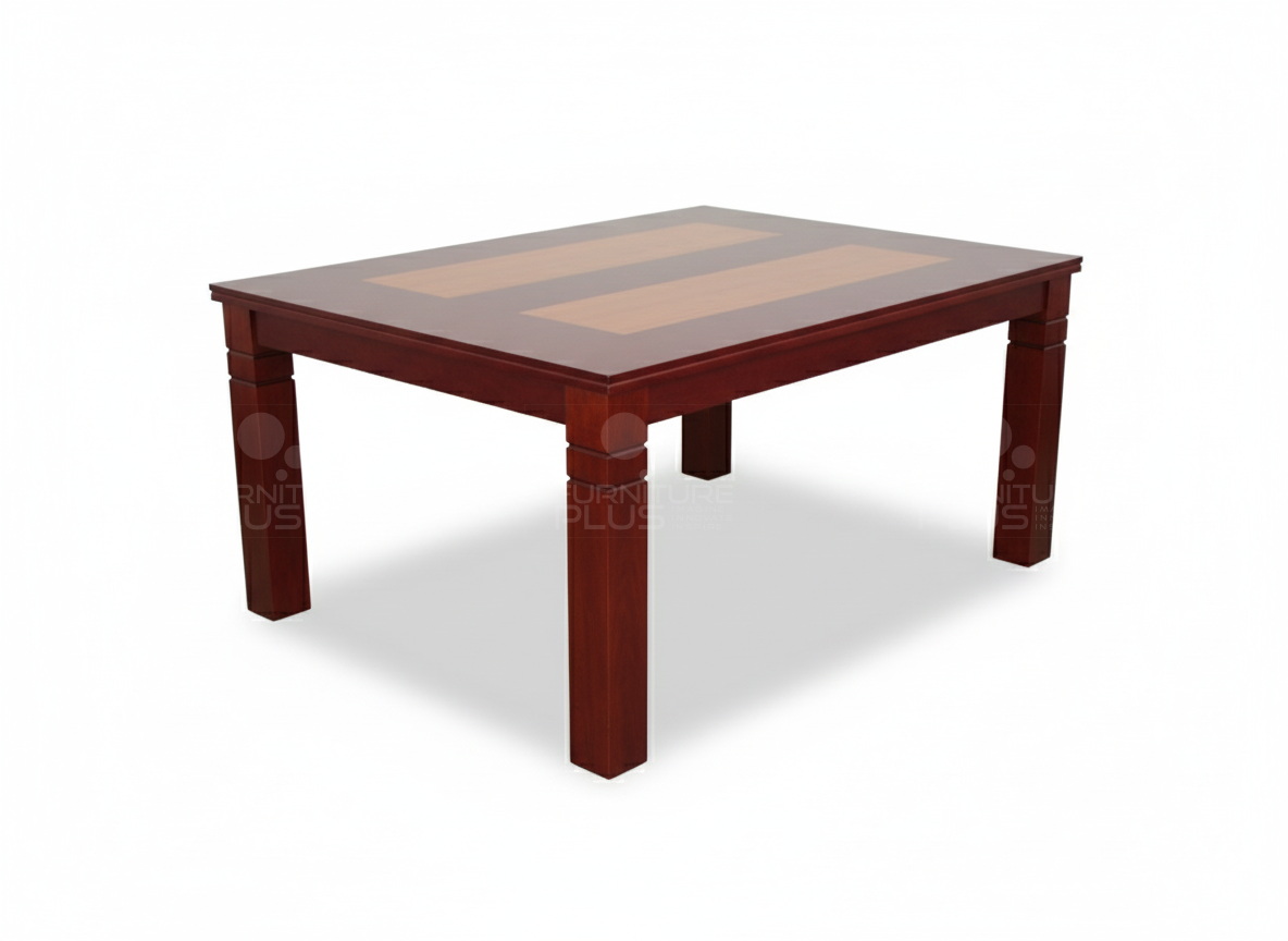 The square designer table is highlighted by having a lighter colour patch on the table top. The Jim dining table is uniquely crafted with authentic planks using solid Mahogany timber that will last for many years growing more graceful with age. The solid top joined to chunky square legs with a grove pattern really adds a presence to the dining room not only as a gathering spot for family and friends, but also as a focal point in the home.