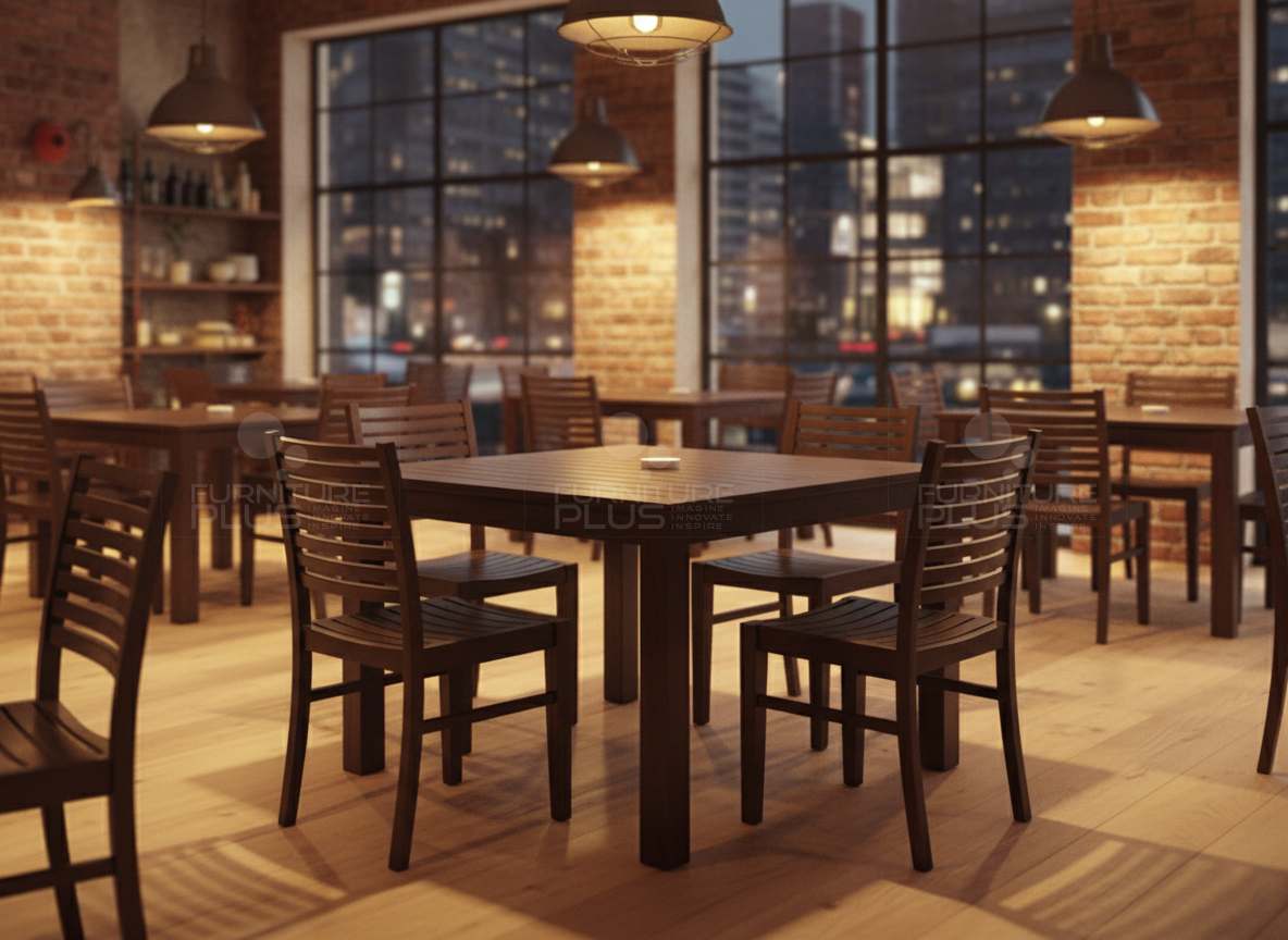 An ideal solution for hotels, restaurants or a small dining area. The table with pass through grooved top with sturdy legs is made out of solid Mahogany timber that will last for many years growing more graceful with age.