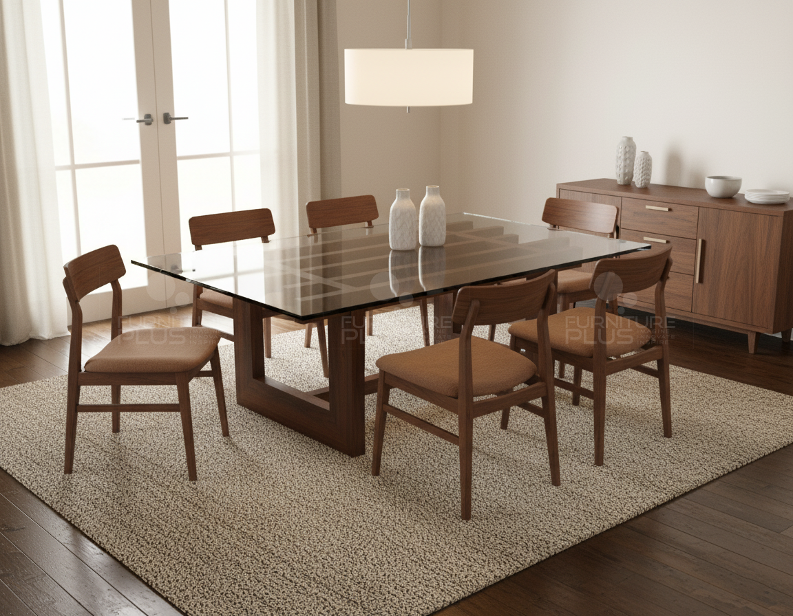 The U Alberto GT dining table is uniquely crafted with authentic planks using solid Mahogany timber that will last for many years growing more graceful with age. The glass top resting on sturdy U-shaped legs really adds an open presence to the dining room not only as a gathering spot for family and friends, but also as a focal point in the home.