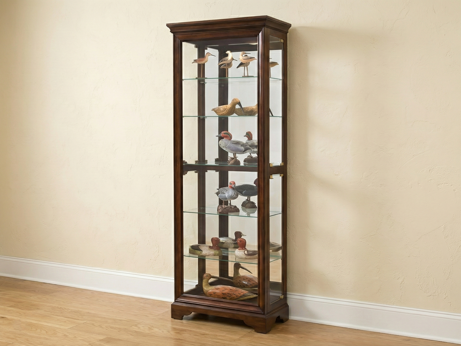 Showcase and protect your favorite ornaments & valuables in this stylish display glass cabinet. Whilst boasting of a sturdy wooden frame made of Solid Mahogany hardwood and glass panes to protect your trinkets and photographs the Knightsbridge also offers a spectacular view of all gorgeous pieces you may have displayed.