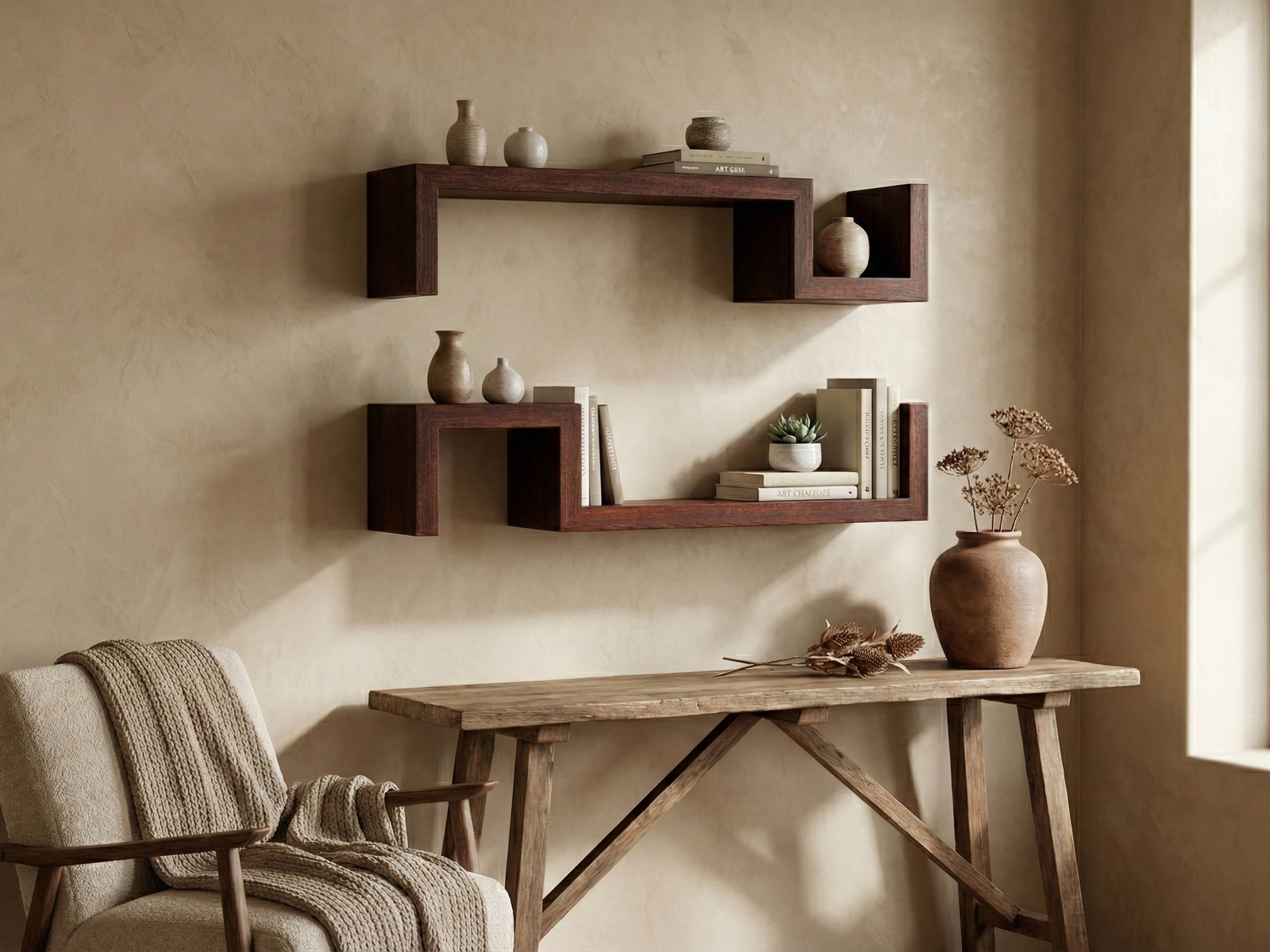 If simplicity is what you appreciate, then the set of two Ruislip wall mounted shelves are surely going to catch your eye. Place your favourite decor pieces on these shelves, along with candles, flower vases, and potpourri to enhance its beauty. These can also be mounted in the entryway to keep your keys, mail, or other essentials that you might need while leaving home. It is made from solid Mahogany timber that will last for many years growing more graceful with age.