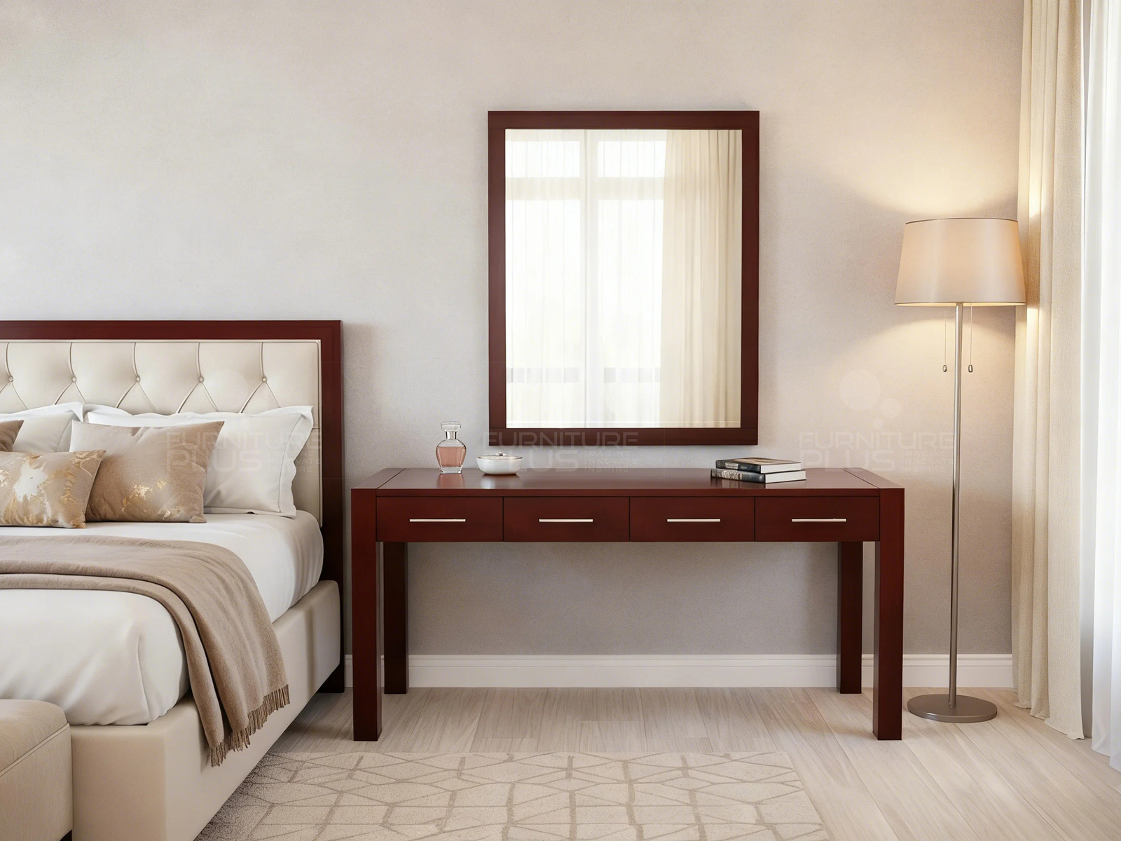 Compliment your dressing area with this straight lined rectangular dressing table. The extra drawers of Angelina offers plenty of space for make-up and jewellery to create your own personal styling zone. Angelina is made to last for years out of solid Mahogany timber. Wall mounted mirror and dressing stool (if required) are priced separately. The number of drawers depend on the length of the item.