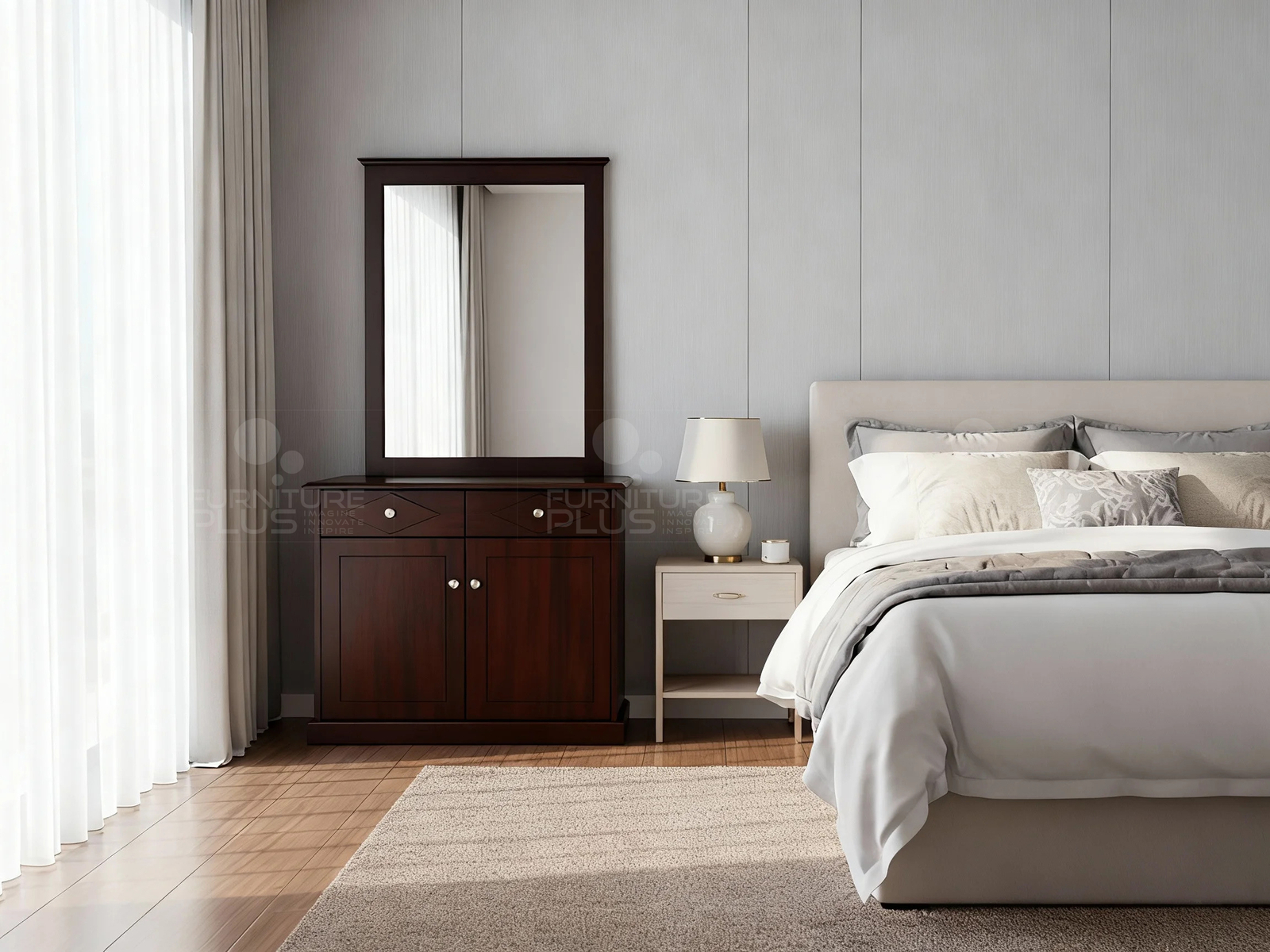 Add a touch of elegance to your decor with this lovely Serina dresser unit that offers plenty of convenient storage space for all your needs at easy reach. Featuring designer panel lines and slight moulding, it is a perfect addition in any bedroom ensemble. The Serina dresser is made to last for years out of solid Mahogany timber. Dressing stool (if required) is priced separately.