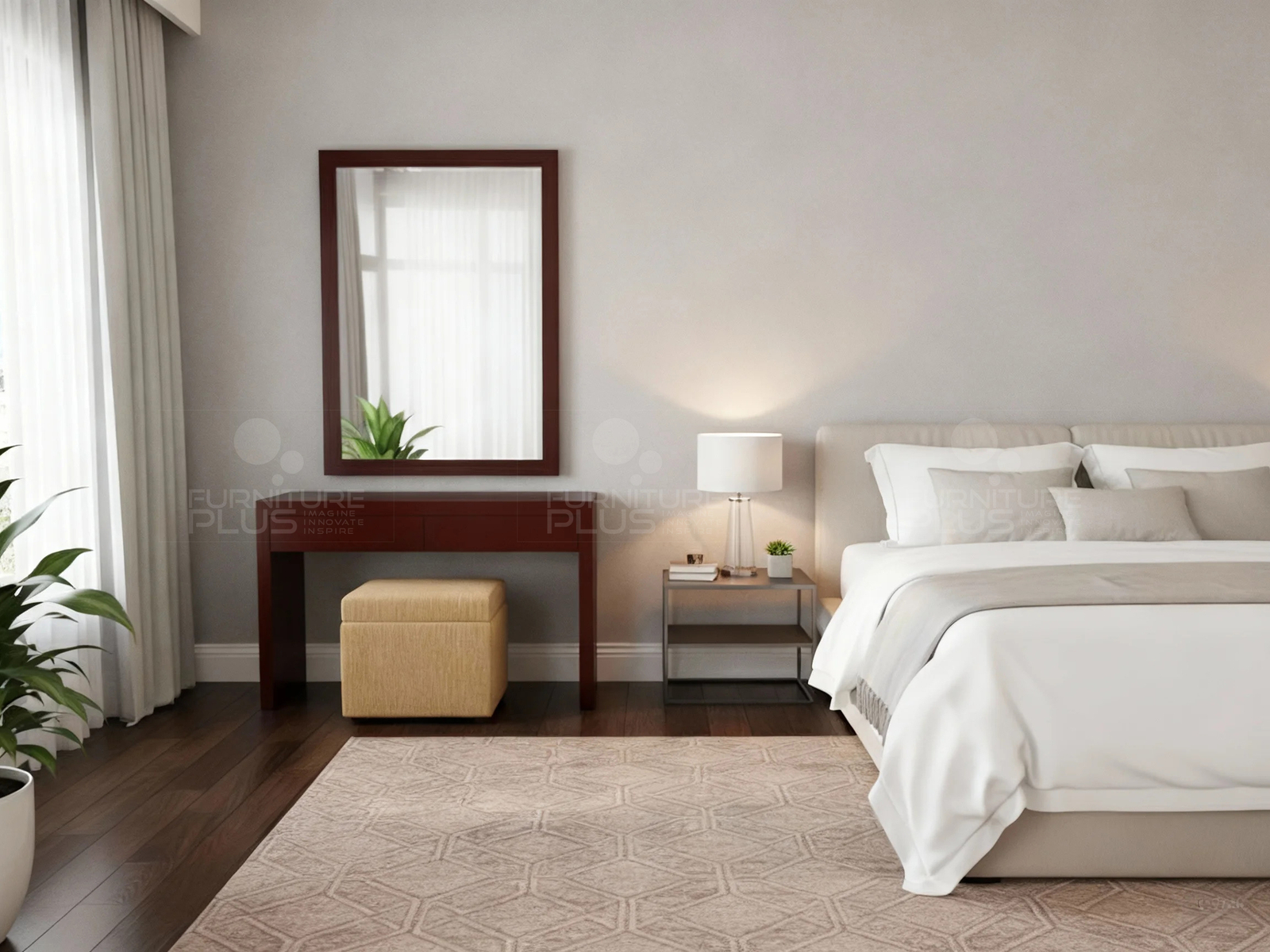 Functional and stylish with straight lines, this Violet dressing table is a wonderful piece for your morning and night-time routines. The attached drawers provide ample storage space for your belongings. Violet is made to last for years out of solid Mahogany timber. Wall mounted mirror and dressing stool (if required) are priced separately.
