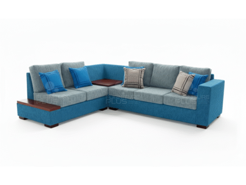 This fully upholstered sectional sofa signifies the simplicity in timeless design suited to any environment. By adding a timber top in the corner together with a drop arm plate and throwing additional pillows it enhances the beauty and utility value.