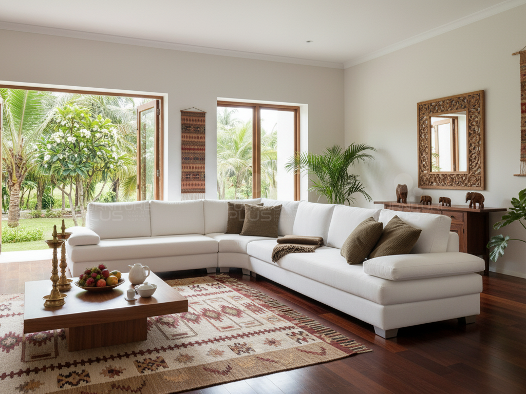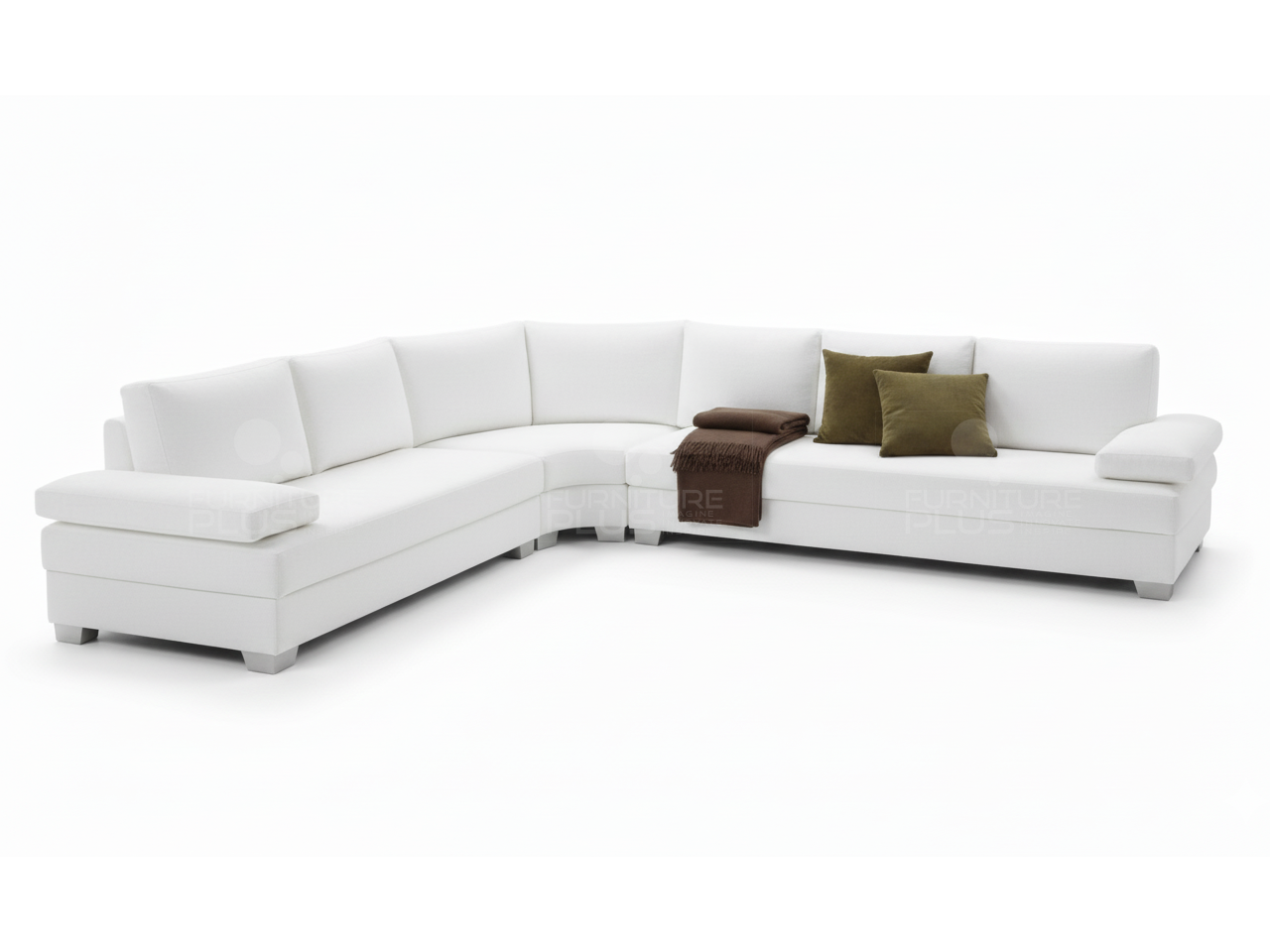 A classic sectional seating arrangement designed with a semi curved corner seater and slightly elevated arms look amazing. This unit is made to precise proportions together with the removable back cushions whilst maintaining best comfort that invites many hours of socializing, and relaxation.
