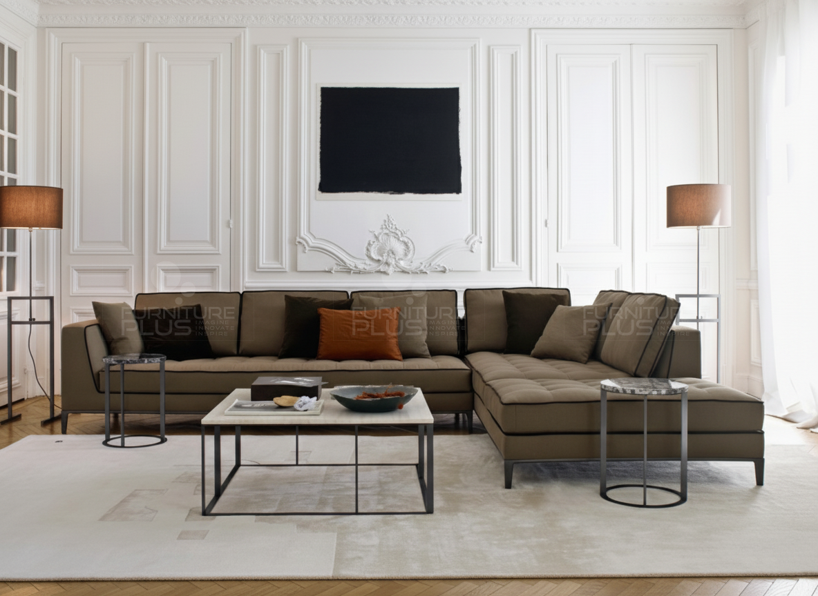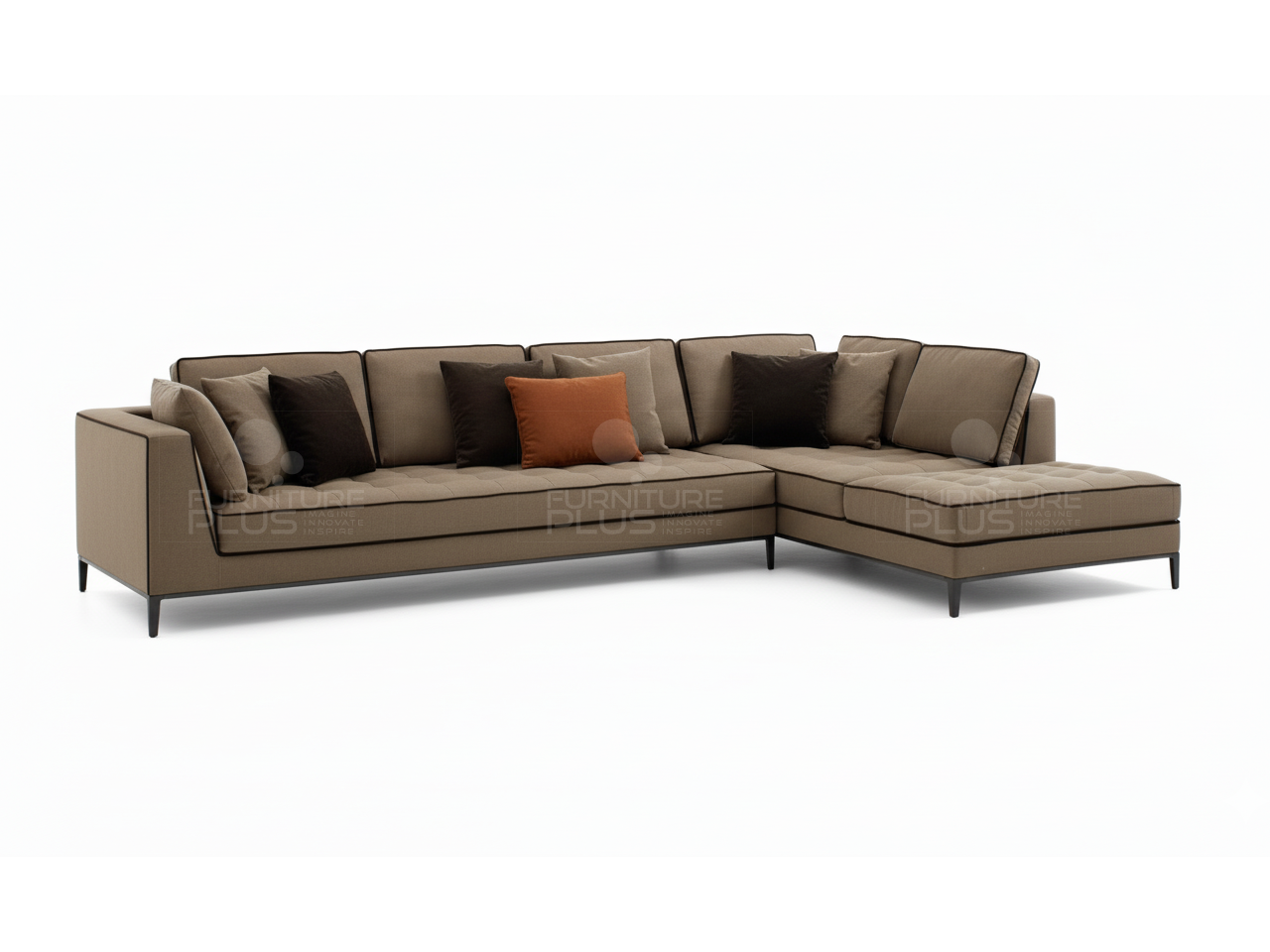 With the high designer steel base framed legs the sectional units are differentiated from the rest. The seats and back cushions are removable and the pieces are made to precise proportions ensuring a very comfortable seating arrangement. Extra throw pillows may be added as per individual preference.
