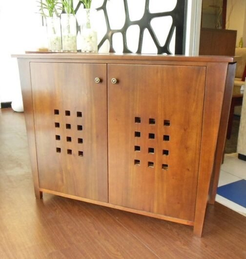 Organizing the entryway? Instead of stacking up shoes by the door, use this dramatic modern SR-5 shoe cupboard to tuck away all your boots and sneakers in streamlined fashion. Founded atop slanted feet, it’s manufactured out of solid Mahogany timber that will last for many years growing more graceful with age. Featuring a clean-lined silhouette, it offers two doors open to reveal spacious interior shelves and is lovely along with a rectangular top that can stage anything from potted plants to framed family photos.