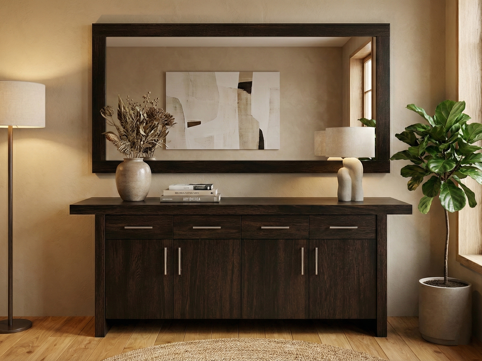 Whether you’re hosting a dinner party with your foodie friends or throwing a festive family feast, you’ll be happy to have this server as your sidekick. Featuring plenty of storage space by way of four cabinets and four drawers, you have designated areas to keep all of your essentials. This clean-lined piece is crafted from solid Mahogany timber, a durable and renewable material that maintains its genuine character with each passing year and finished in a neutral solid tone that blends into any existing ensemble.