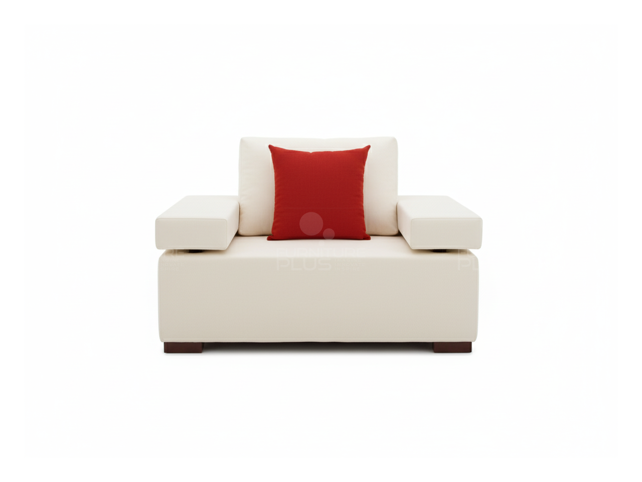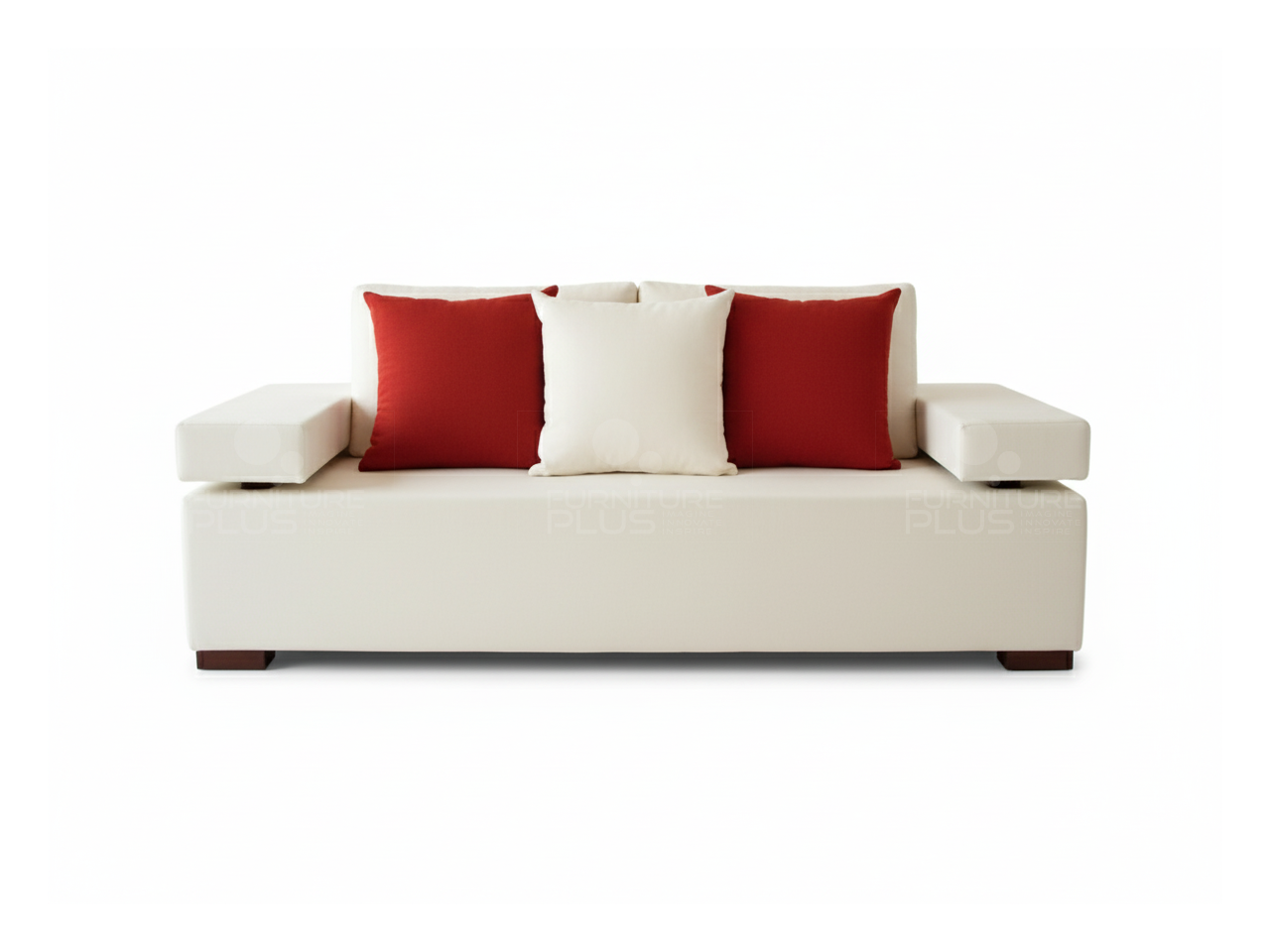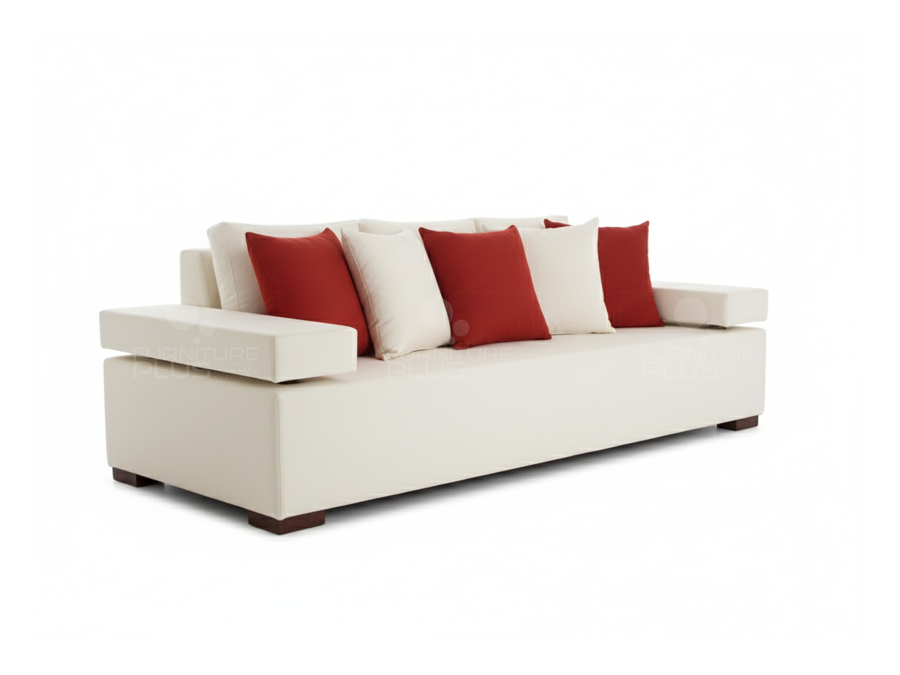 Fully upholstered sofa with firmly fitted seat and with removable back cushions together with 10″ wide elevated designer arms rested on sofa displays its exclusivity in master craftsmanship.