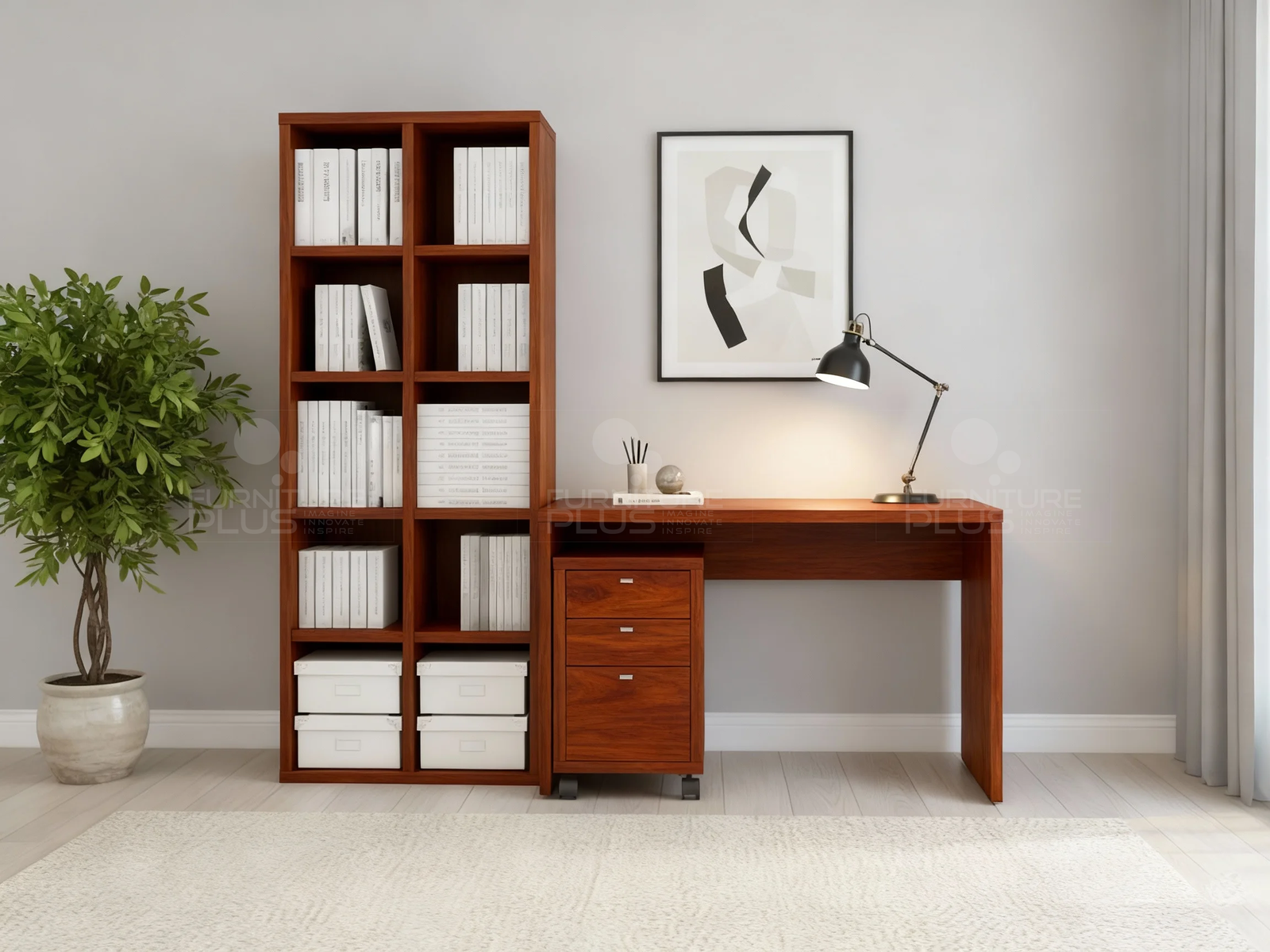 his lovely Bellamy study table is tailor made to customer requirements out of solid Mahogany wood that will last for many years growing more graceful with age. It could transform any empty area into a well-edited workspace. The book shelving unit may be purchased separately.
