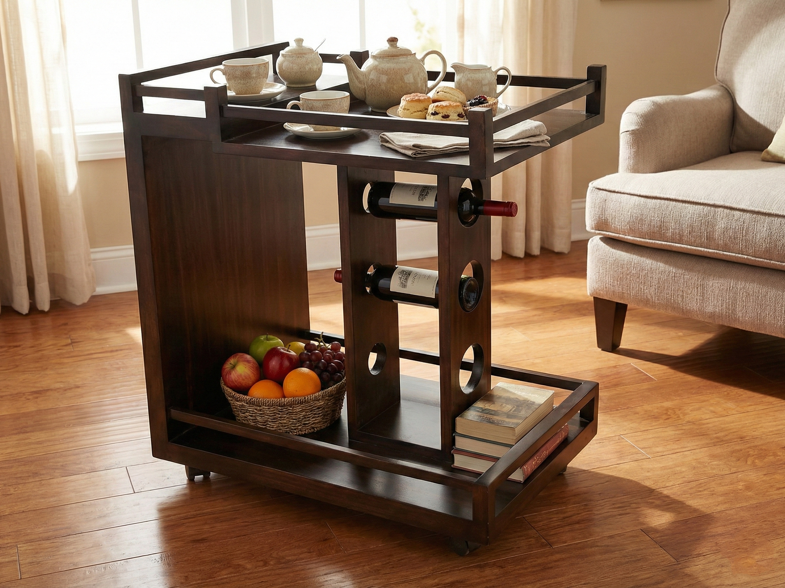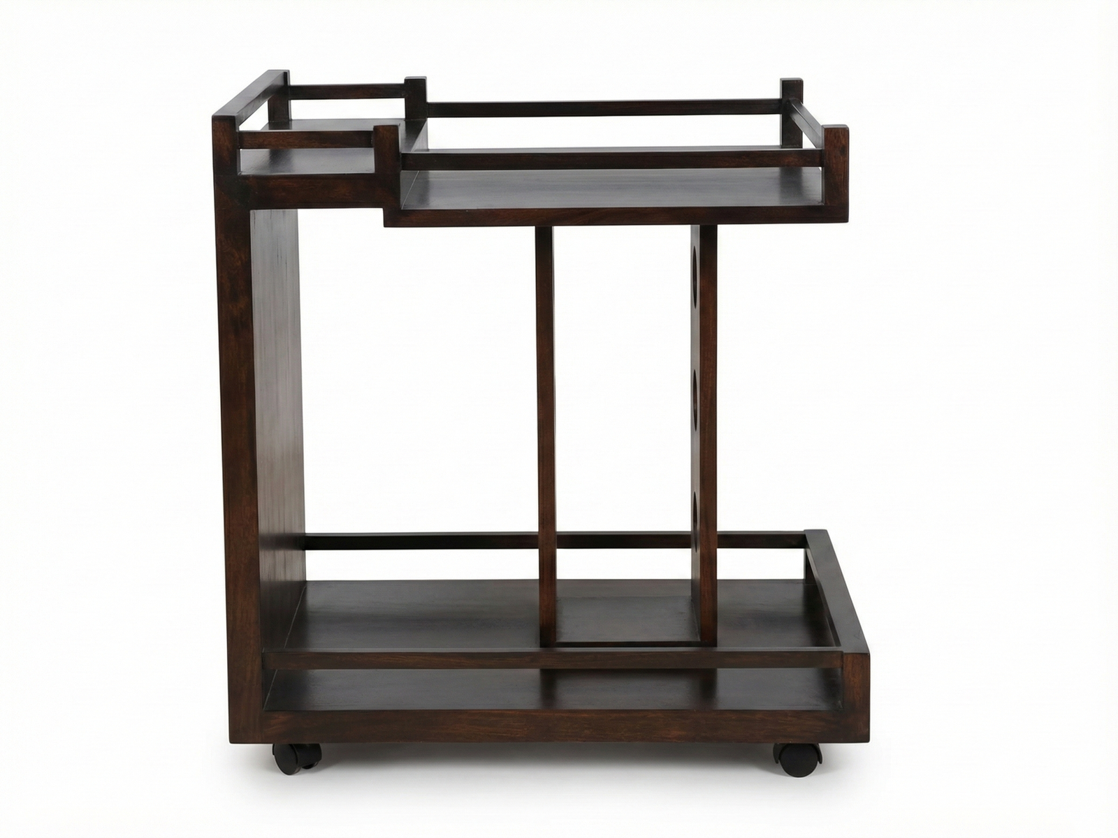 An ideal piece for entertaining or for storing bar-ware and spirits, the beautifully crafted Hortons trolley combines function and design perfectly. Whether accompanying brunch as additional preparation space, paired with the lunch table for condiments or just nearby as evening approaches for that perfect sundown, this trolley ensures the little details that make special moments, are never far away. Hortons is made to last for years out of solid Mahogany timber.