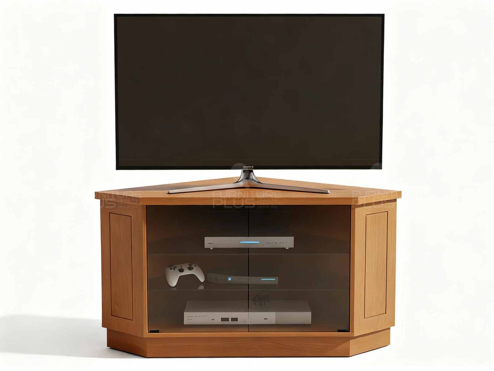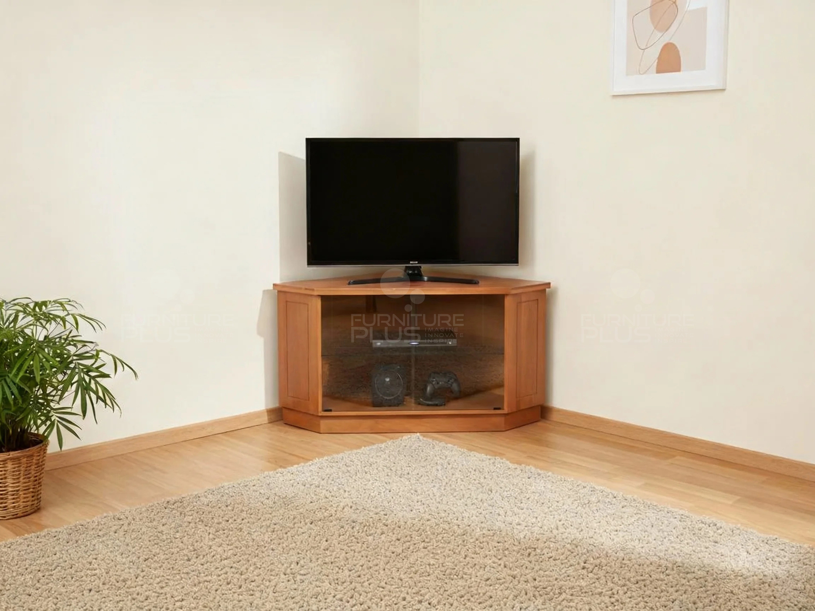 Make the most of your square footage with this space-saving Bermuda corner TV stand, a functional addition to your home that doesn’t sacrifice shimmery style. It showcases two glass cabinet doors that up the glamorous appeal in your abode. This TV console is made out of solid Mahogany timber that will last for many years.