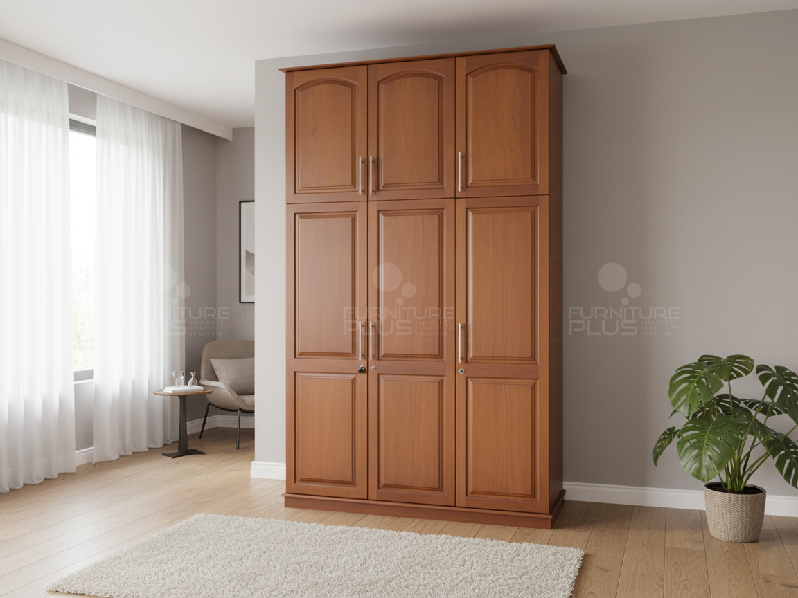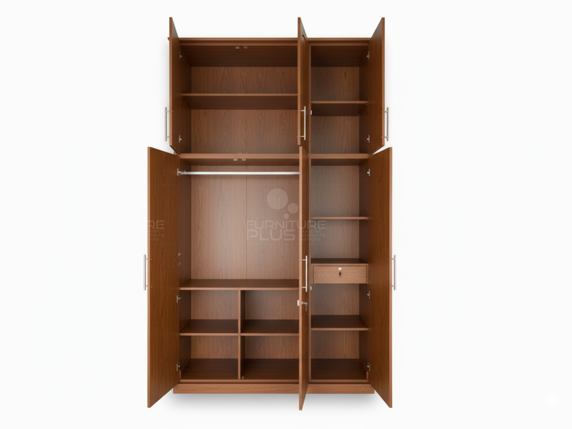 The Lancaster wardrobe is a perfect solution for apartments or residences where maximum space management is an eminent factor. This exquisite wardrobe consist of eight swing doors and is made in two units consisting as top and bottom units creating the smart essential storage space that’s otherwise been ignored by many. The internal details of the bottom unit is designed with hanging rods, shelves and two drawers. This modern unique master piece is crafted out of solid Mahogany timber that will last for many years growing more graceful with age.