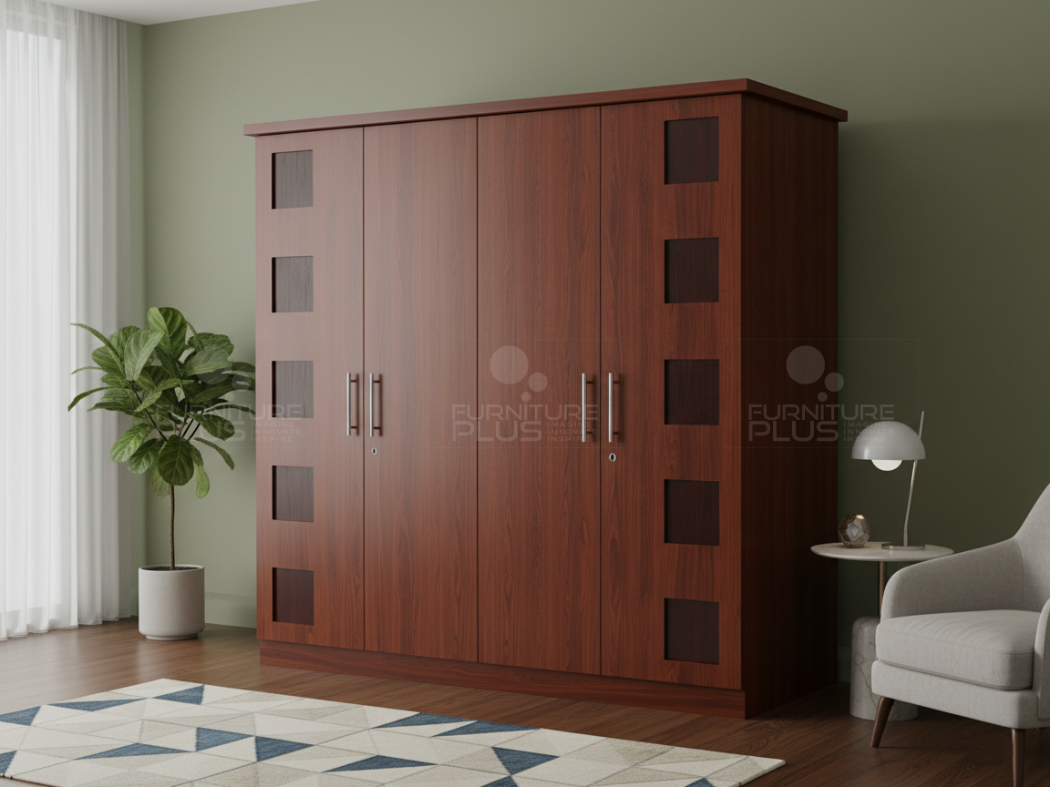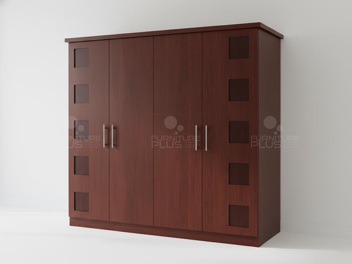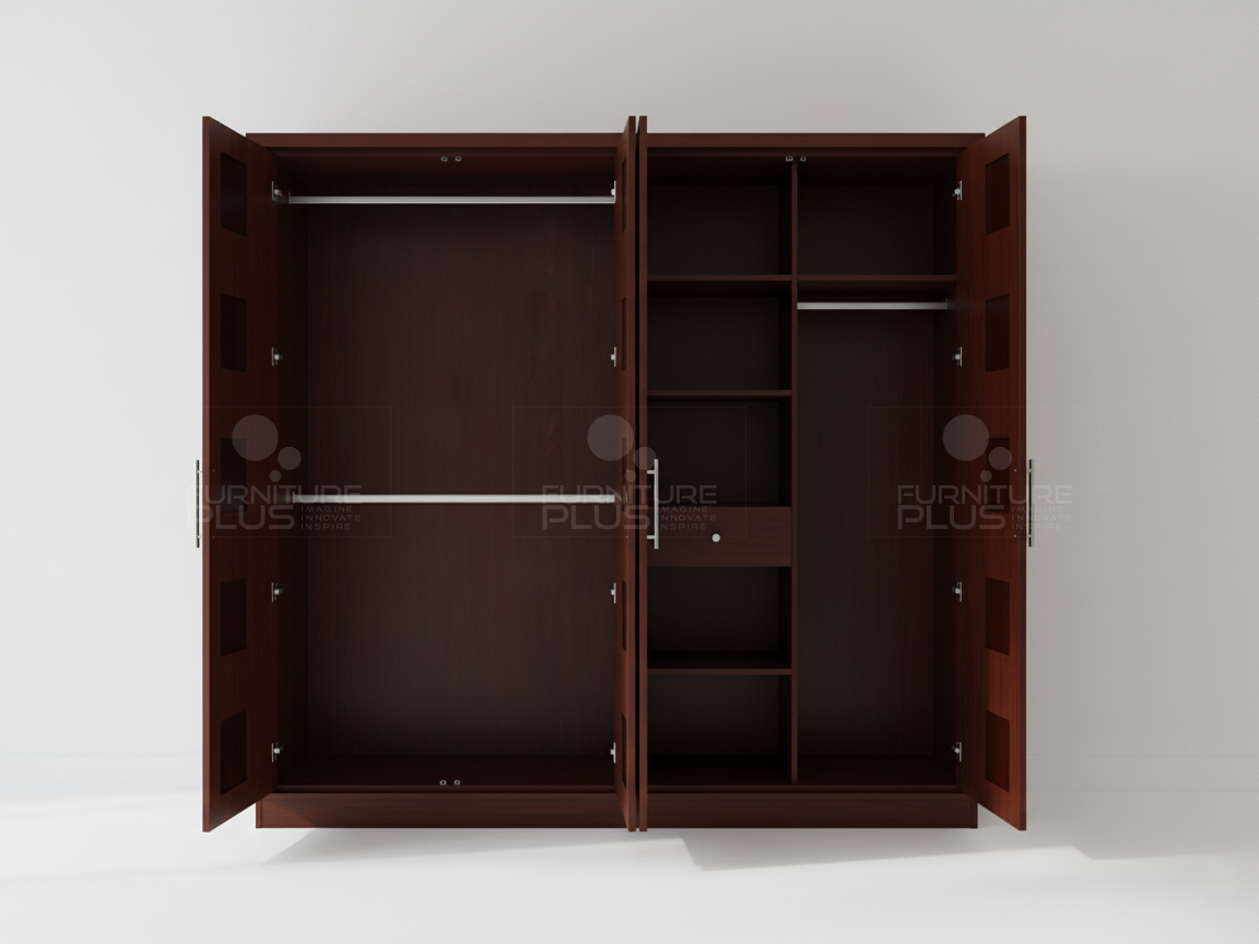 The Manchester wardrobe is an elegant piece with a modern touch that compliments with many interior themes. This exquisite wardrobe consist of four swing doors. The internal details of wardrobe is designed with hanging rods, shelves and two drawers. The wardrobe is made out of solid Mahogany timber which is a very durable natural hardwood that will last for many years growing more graceful with age.