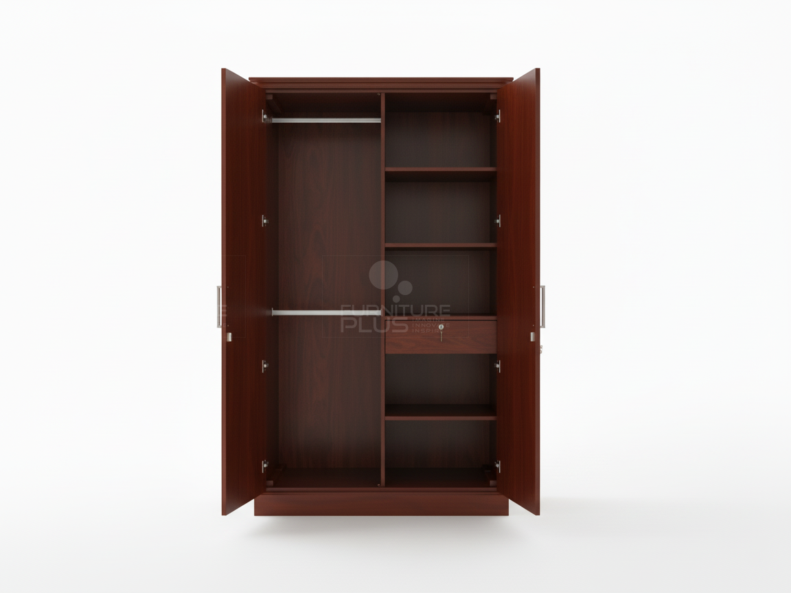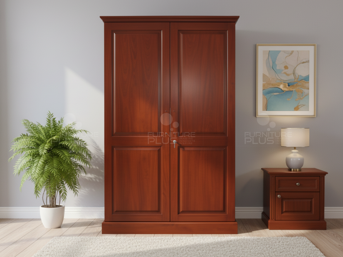 Featuring a classic design with double doors, an inbuilt molding top and subtle panel detailing, the Regent wardrobe is sure to complement any scheme. Combining the natural beauty of solid Mahogany timber with fine detailing, this unit has a timeless elegance that’s hard to beat. The internal detail is designed with hanging rod, shelves and one drawer.